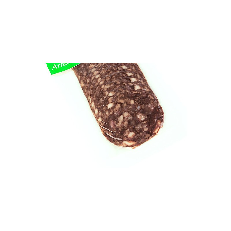 Ingredients: magre de porc, papada, sal, pebre negre, sang 10%, conservant. Envasada al buit en bossa de 100 gr. Sense gluten, sense lactosa.